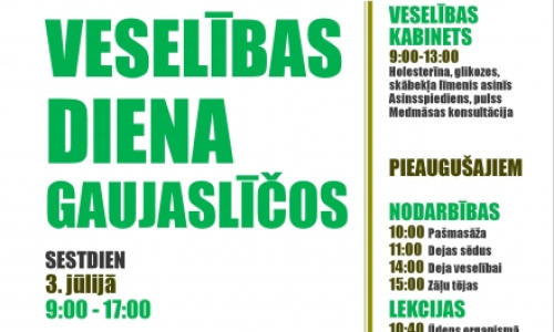 Jau ziņots, ka sestdien, 3. jūlijā kopienas centra “Gaujaslīči” teritorijā Cēsīs, Dzirnavu ielā 45 Veselības veicināšanas dienas ietvaros rīkotās lekcijas un nodarbības notiks brīvā dabā. Pasākums domāts visai sabiedrībai, apmeklētajiem nav jābūt vakcinētiem vai Covid-19 pārslimojušiem, arī Covid-19 tests nav jāveic.